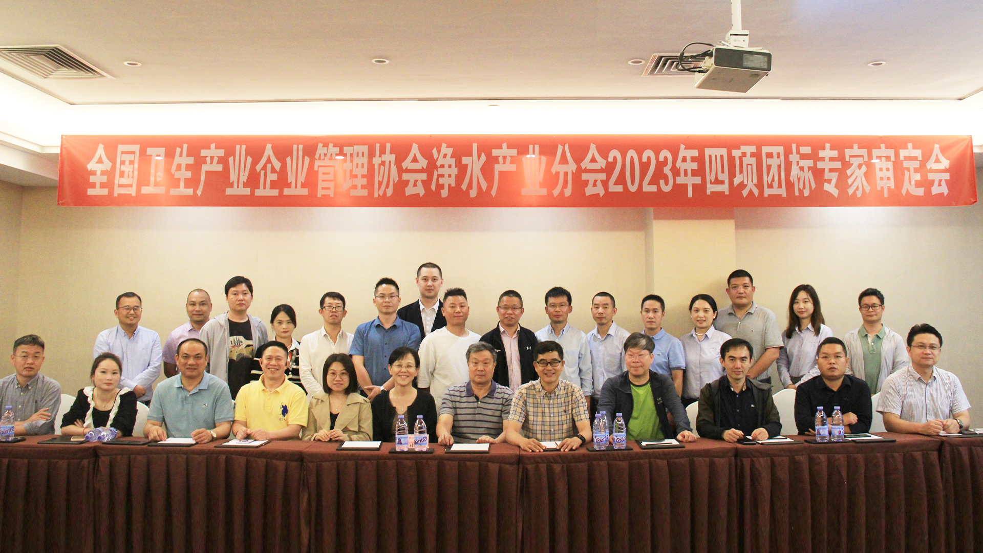 全國衛(wèi)生產(chǎn)業(yè)企業(yè)管理協(xié)會凈水產(chǎn)業(yè)分會2023年四項(xiàng)團(tuán)標(biāo)專家審定會(第一排左六、第二排左一均為開能代表)