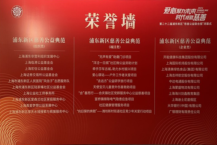 開能集團榮獲2022-2023年度浦東新區慈善公益典范(企業類)獎項
