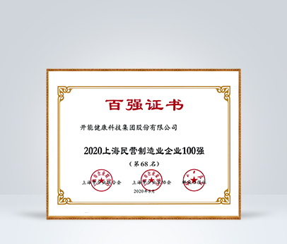 2020年被評為上海民營制造業(yè)企業(yè)100強