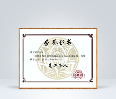 2020總裁瞿亞明榮獲上海市商貿流通服務業(yè)抗擊新冠疫情、保障城市生活、提振上海市場先進個人