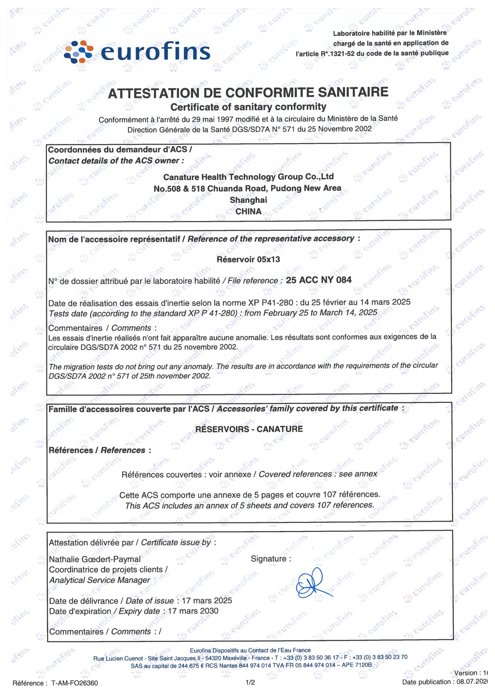 玻璃鋼桶法國ACS認(rèn)證