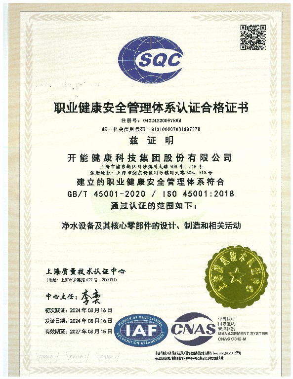 ISO45001 職業(yè)健康安全管理體系證書(shū)
